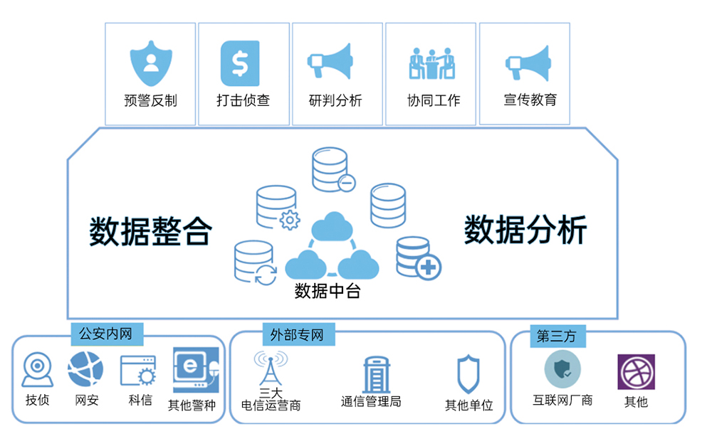 反詐聯合實驗室建設以打擊治理電信網絡詐騙犯罪及所有涉網犯罪為核心,實驗室采用警企合作,發揮各自能力優勢,構建反詐環境。以“兩升兩降”為目標,開展研究實驗,尋找有效途徑,加強AI模型建設,線索預警智能化,摸索辦案過程,工作機制體系化,多源數據融合,分析研判深入化,找尋深挖尋蹤方法,窩點溯源精確化,提升數據展現能力,業務態勢可視化。