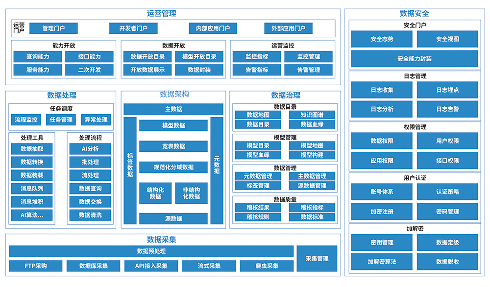 解耦的數據中臺體系架構,可按照用戶應用需求進行組合,或者對單個模塊進行擴充,能滿足大多數政府數據中臺建設的需求。